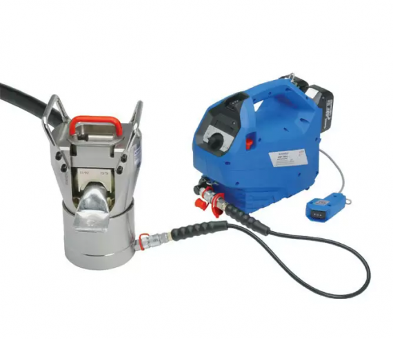 Электрогидравлическая аккумуляторная насосная станция предназначена для опрессовки наконечников, резки кабеля и выдавливания отверстий в металле c высокой производительностью. Может использоваться как в цехах, так и вне помещений. Обладает небольшим весом и эргономичным дизайном, что делает ее достаточно удобной в работе. Насосная станция может работать и от аккумулятора 18 В и от сети 220 В через специальный адаптер. Гидравлическое масло, которое применяется в насосной станции, не наносит вред окружающей среде, может применяться при низких температурах, а рабочий объем масла составляет около 800 мл.