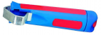 Для всех распространенных круглых кабелей диаметром от 8 до 28 мм. Кабельный нож оснащен эргономичной, противоскользящей формой ручки. При помощи регулирующего винта в конце инструмента производится плавное бесступенчатое выставление глубины реза, что предотвращает повреждение изоляции жил проводов. Внутри инструмента вращающееся лезвие-эксцентрик автоматически поворачивается для поперечного и продольного реза. Вид кабеля: тонкожильный и массивный кабель из ПВХ изоляции Внутреннее лезвие: регулируемое + заменяемое Материал: полиамид, усиленный стекловолокном